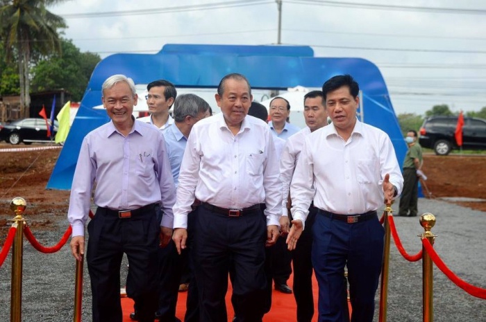 Phó Thủ tướng Chính phủ Trương Hoà Bình, Thứ Trưởng Bộ GTVT cùng đại biểu tới dự lễ khởi công dự án cao tốc Dầu Dây - Phan Thiết, sáng 30/9.